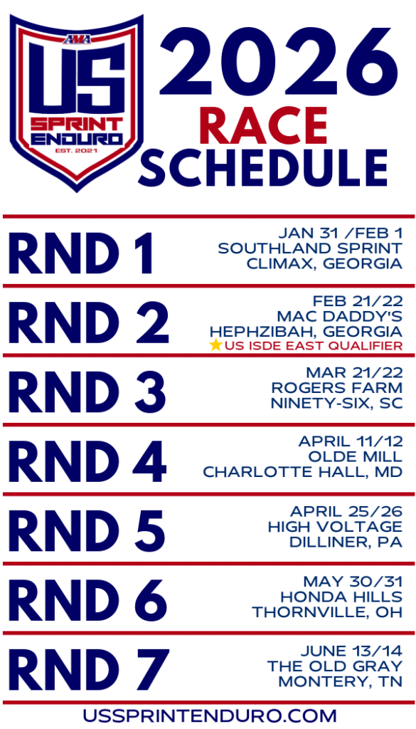 The 2026 AMA US Sprint Enduro season begins January 31–February 1 with Round 1, the Southland