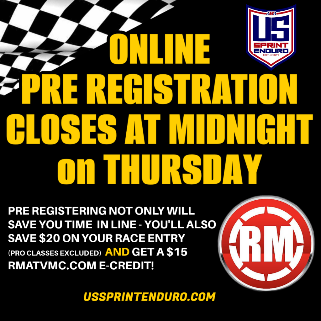 As always pre-registration will close at Midnight Thurs. After that you can come down to the track and get signed up. Again – this is going to be an amazing weekend for racing – the weather and course conditions are prime!